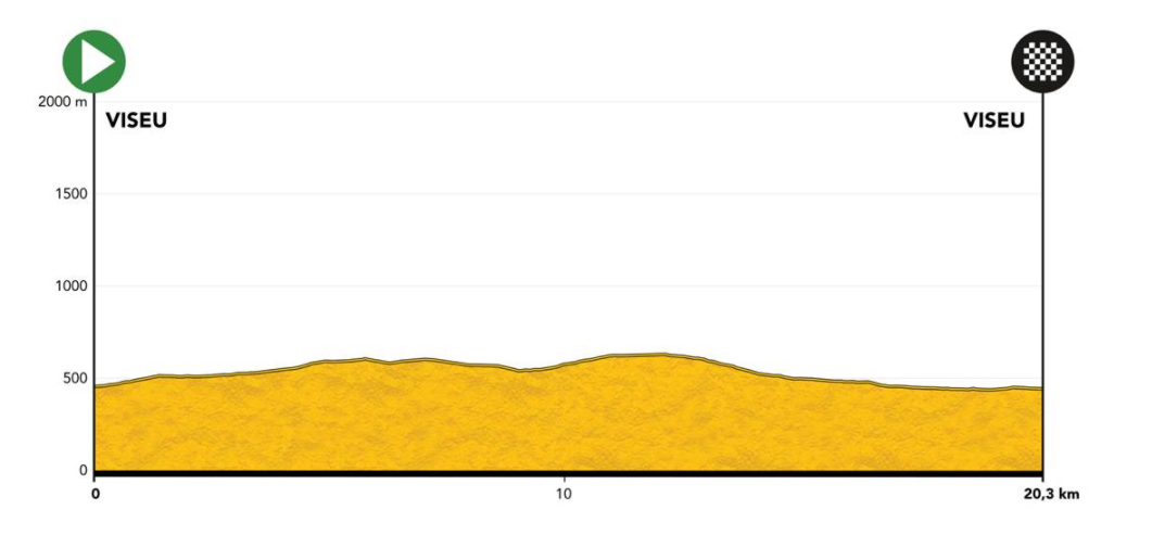 O esforço individual será para grandes motores, a meio tem 2 ligeiras subidas, cada uma com pouco mais de 1000 metros a 5%, é preciso gerir estes momentos para não ficar vazio na parte final.