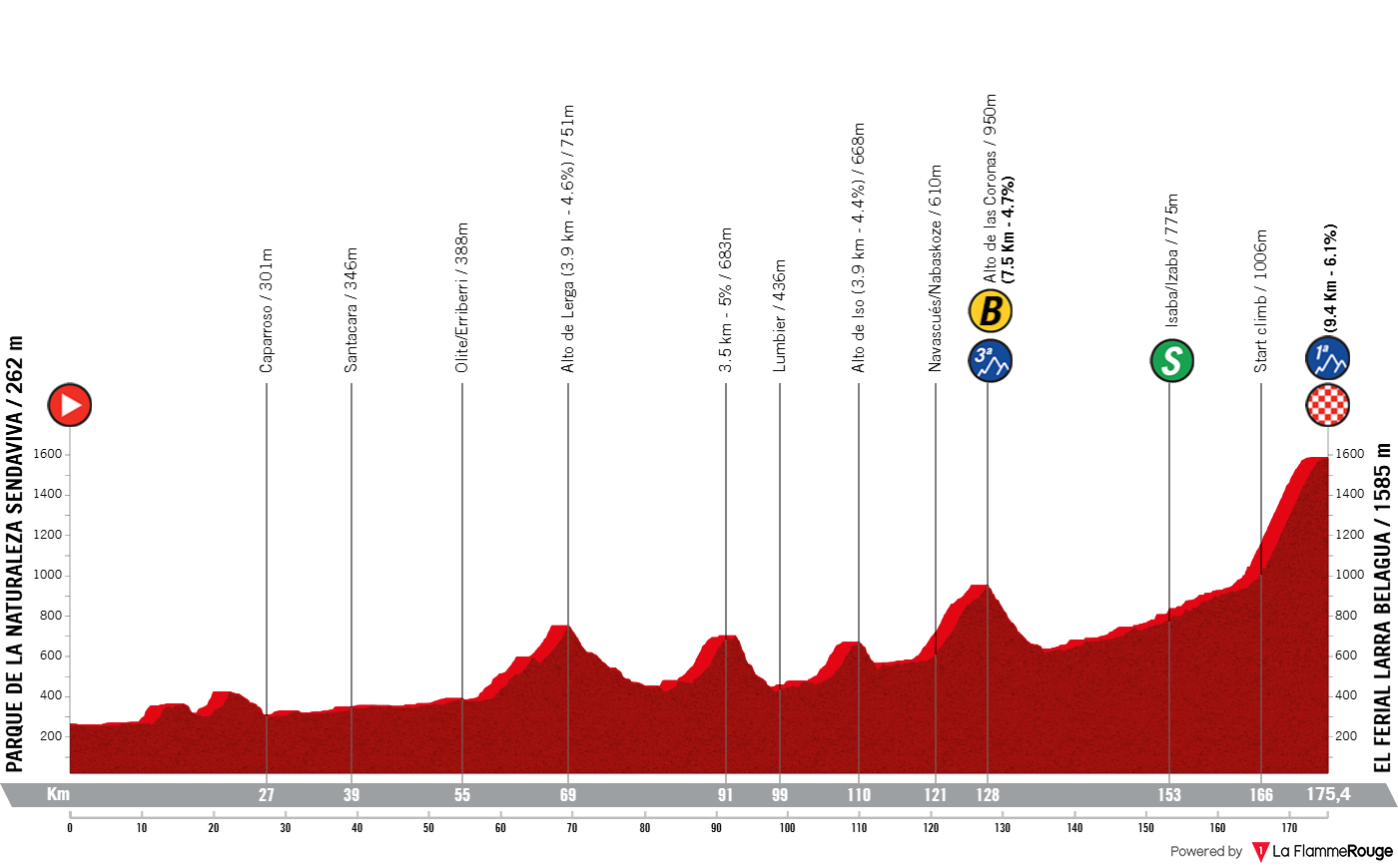 Esta é uma etapa em tudo idêntica ao 9º dia de competição. Com mais alguma dificuldade na fase intermédia, principalmente o Alto de Lerga (4 kms a 4,5%) e o Alto de las Coronas (7,5 kms a 4,7%), a etapa pode ser mais endurecida mas tudo se vai resumir à subida final. O Puerto de Belagua será o palco de todas as decisões, uma subida com 9400 metros a 6,2%. A parte mais dura está no seu miolo, com 5 kms a nunca baixarem dos 7% e dois deles a rondar os 8%. A média da subida final é estragada pelos últimos quilómetors, principalmente com o último a ser feito em falso plano.