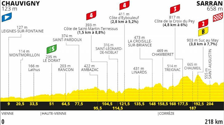 Nos últimos 10 quilómetros existe uma pequena subida, ideal para ataques se ainda existir um pequeno grupo. A chegada a Sarran também não é fácil, com os derradeiros 3200 metros a 3.1%.