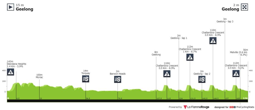 A batalha neste percurso é quase sempre a mesma, os sprinters e as suas equipas vs as equipas que não têm sprinters e precisam de atacar. Depois do que aconteceu no Tour Down Under a responsabilidade e pressão está em cima da Jayco, vão querer ganhar em casa e trazem os líderes para conseguir isso, mas não vemos muito mais equipas com capacidade de perseguição para homens rápidos, talvez consigam a aliança da Trek-Segafredo e com sorte da Ineos (se acreditar em Hayter) e da EF (se acreditar no sprint de Bettiol).