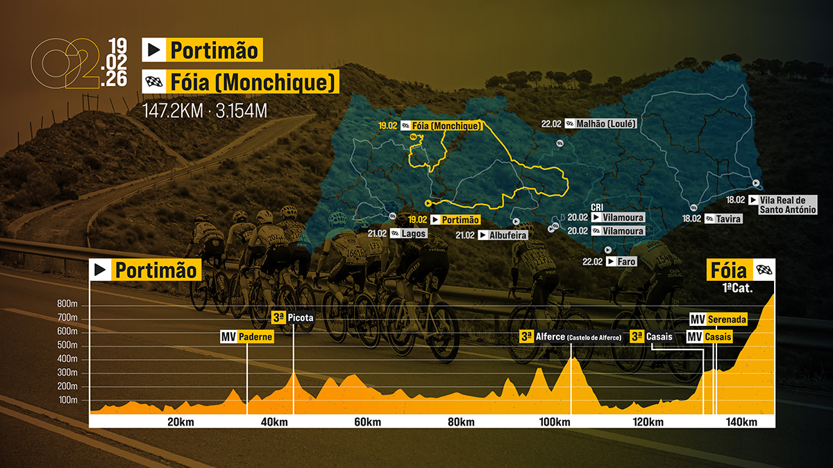 Ai Malhão, Malhão, que estragos vais fazer no pelotão? Com partida de Faro, é uma jornada muito dura para esta altura do ano, um carrossel pela Serra Algarvia, com passagem por Soidos (2,1 kms a 7%) antes do Alto do Malhão, repleto de fãs da modalidade ao longo dos 2500 metros a 9,8%. Haverá 2 passagens pela icónica subida, com a subida de Soidos a poder desempenhar um papel decisivo.