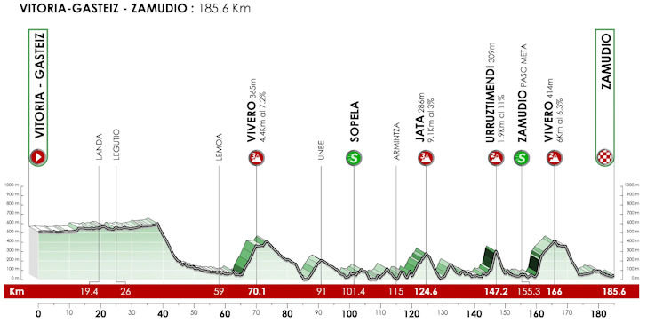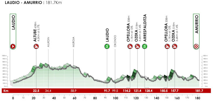 Uma típica jornada basca que tenta promover o ciclismo de ataque ao colocar as principais dificuldades ainda longe da meta. Haverá 2 passagens pelas complicadas subidas de Opellora (1,1 kms a 13%) e Ozeka (3,6 kms a 7,4%), a última delas já dentro dos 30 kms finais. Há espaço para haver diferenças, mas terá de haver continuidade no ritmo e nos ataques. Apesar de não constar do perfil oficial, há uma rampa de 500 metros a 10% a cerca de 5 kms da meta, que pode ser uma importante rampa de lançamento para os atacantes visto que depois é quase sempre a descer até Amurrio.