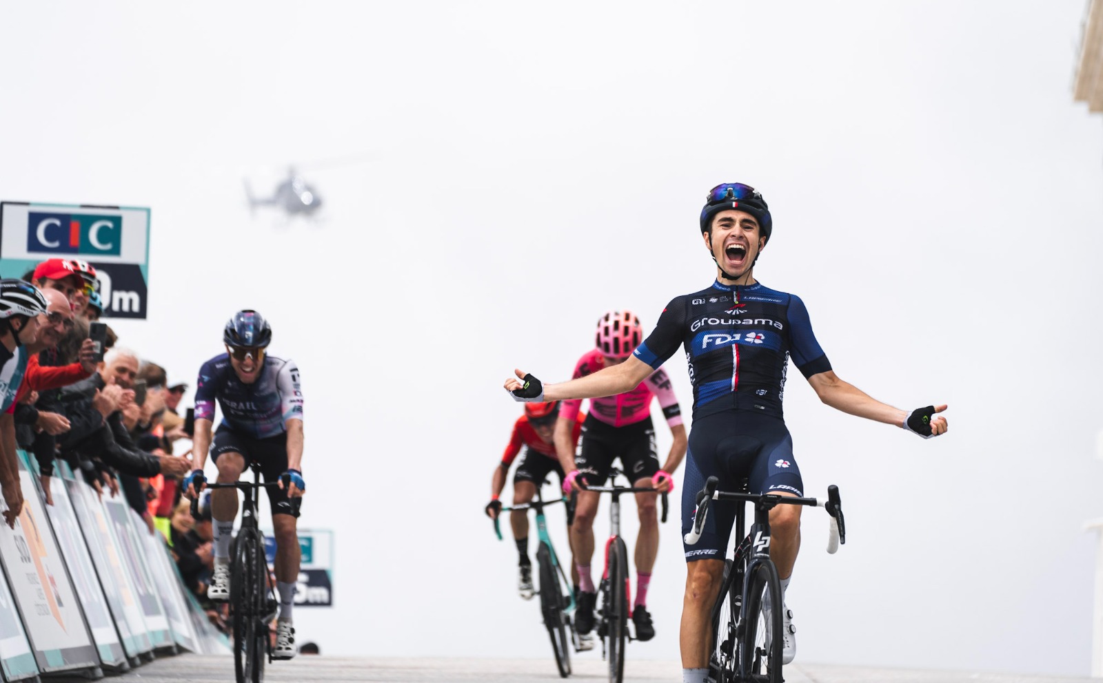 Israel-Premier Tech, TotalEnergies, Groupama-FDJ e Movistar foram dividindo o trabalho na frente do pelotão e apanharam todos os fugitivos já na subida final, com Pablo Castrillo a ser o derradeiro resistente, a menos de 5 quilómetros do topo. Pouco depois, começavam as movimentações, com Cristian Rodriguez a atacar e a fazer a primeira grande seleção no grupo.