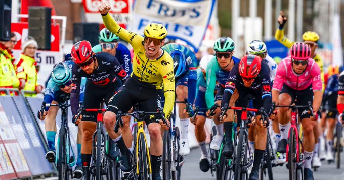 Após a Omloop Nieuwsblad, o pelotão continua pela Bélgica, hoje para a Kuurne – Brussel – Kuurne, uma prova mais amiga dos sprinters e ainda mais amiga se tornou com a ausência de … Mathieu van der Poel. Praticamente todo o pelotão de ontem fez-se à estrada na manhã de hoje e viu sair para a fuga Johan Jacobs, Roger Adrià, Matis Louvel, Dries de Bondt, Frits Biesterbos, Storm Ingebrigsten e Cole Kessler.