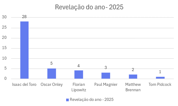 Os nossos leitores decidiram e elegeram Isaac del Toro como a revelação de 2025. Num total de 43 votos (obrigado pela participação), e numa votação clara, o ciclista mexicano recebeu 28 votos, o que equivaleu a 65%. Oscar Onley foi 2º, com 5 votos, e Florian Lipowitz completou o pódio com 4 votos. Amanhã, sairá a 4ª sondagem, onde vamos eleger o gregário do ano.